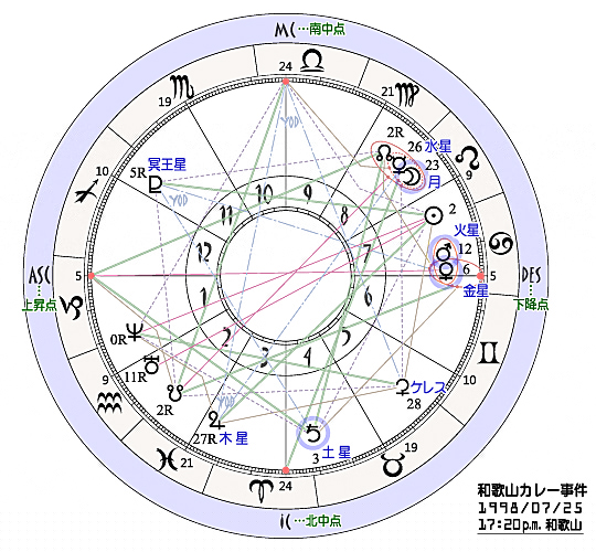 One-Point ◆ かなりの権力者やTOPの関与です。また「冥王星」のみならず「ケレス」も関わっていますので、“秘密”や“隠蔽”も起こりえます。町内の夏祭りで提供された毒物カレーを食べて中毒など異常を訴えた67人(うち死亡4人)と犯人との直接的な関係が薄いシャレにならない事件です。